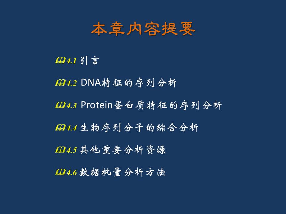 In this chapter, we mainly introduce the sequence analysis of biological molecules (such as DNA or protein), which includes promoter identification, gene prediction, codon usage analysis, trans-membrane analysis, and so on.